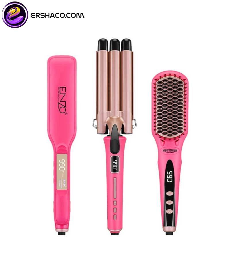 اتو و حالت دهنده انزو پروفیشینال به همراه فرکننده و برس حرارتی Enzo Professional EN-3956B
