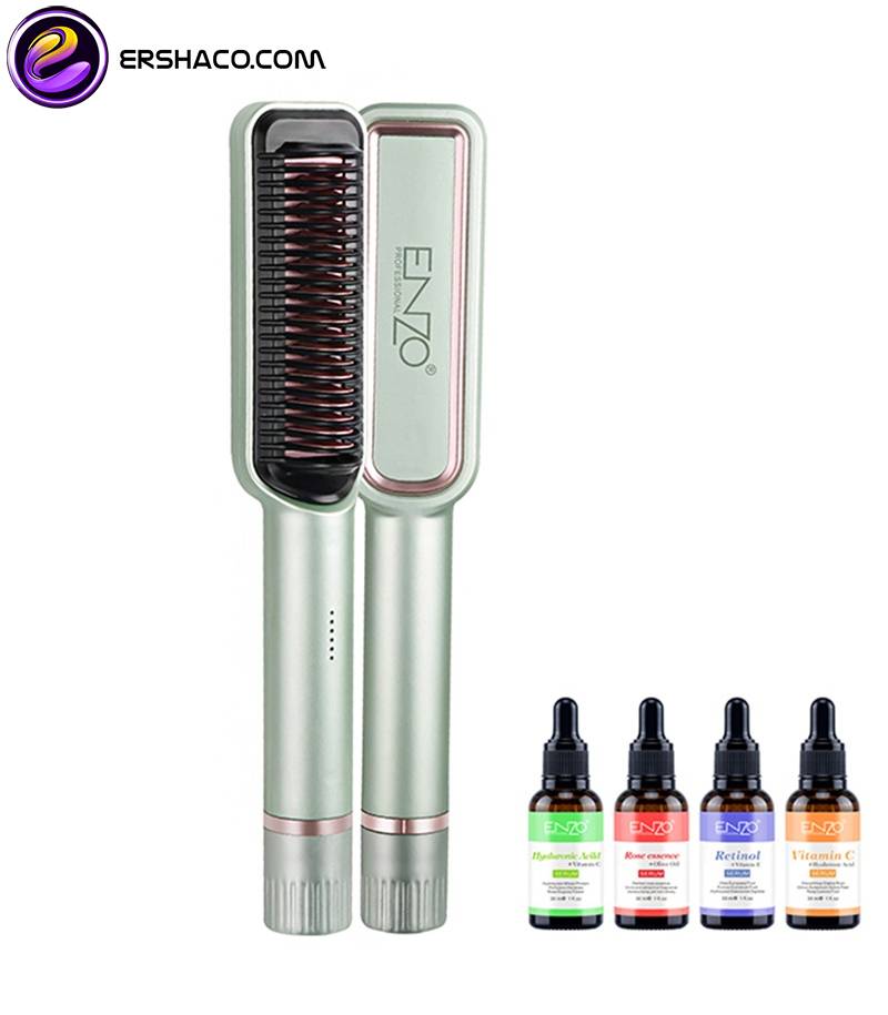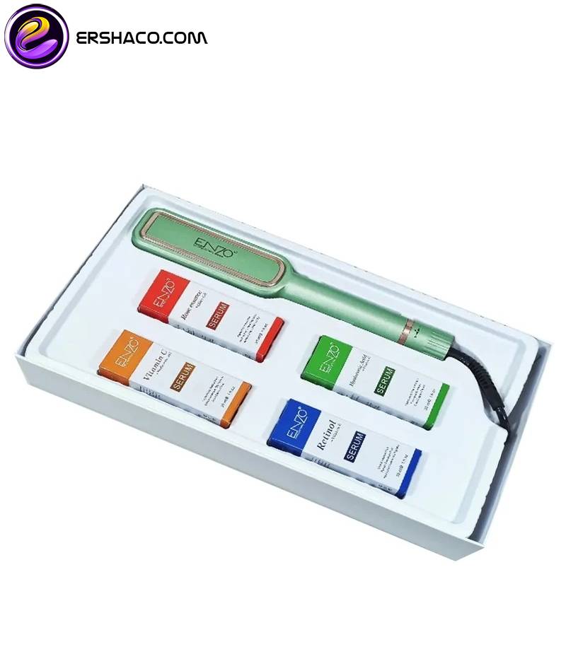 برس حرارتی انزو پروفیشینال Enzo Professional EN-4113 از صفحه ی سرامیکی ساخته شده و مناسب برای استفاده حرفه ای و شخصی است.درون جعبه برای تراپی های مختلف مو حاوی 1 عدد روغن رتینول 30 میلی لیتر،1 عدد روغن ویتامین سی 30 میلی لیتر، 1 عدد روغن اسید هیالورونیک 30میلی لیتر و 1 عدد روغن عصاره رز 30 میلی لیتر است .برس حرارتی انزو Enzo EN-4113 دارای سیم 1/8 متری است که از منبع برق شهری برای نیرو استفاده می کند.