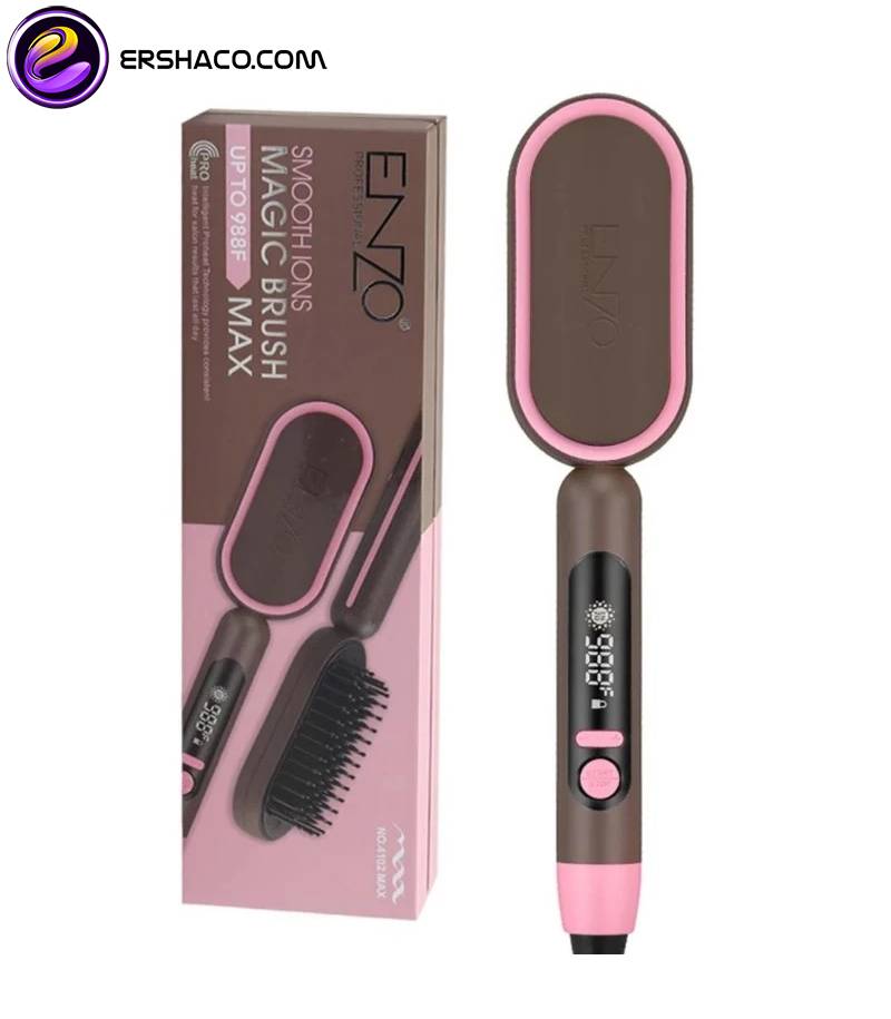 برس حرارتی انزو پروفیشینال Enzo Professional EN-4102MAX دارای صفحات از سرامیک متوسط و دندانه های سرامیک با روکش کراتین است که در مدت زمان کوتاه 30 ثانیه گرم می شود و گستره دمایی از 200 تا 400 درجه سانتی گراد را پشتیبانی می کند. برس حرارتی انزو EN-4102MAX دارای ویژگی هایی از قبیل دکمه روشن خاموش، صفحه نمایش LED ، سیم گردان 2 متری است که مناسب برای موهای کراتینه می باشد.